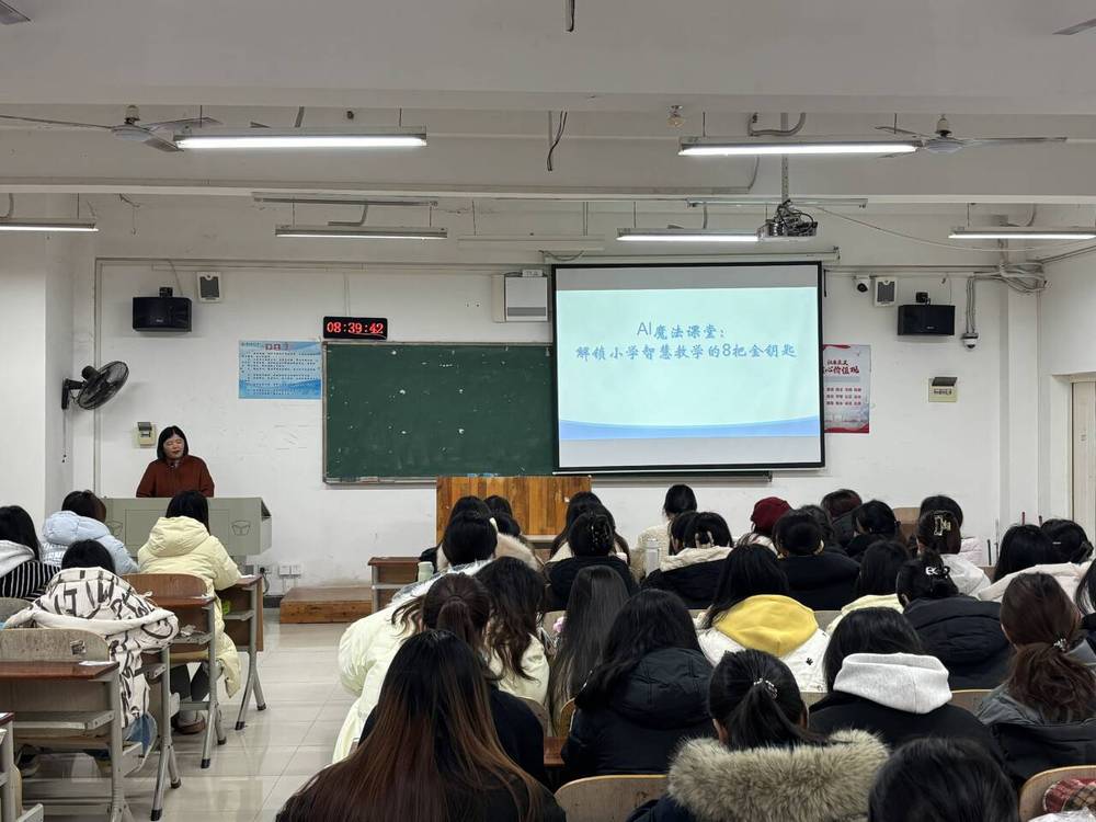 本网讯(姜维/文 梁玉莹/摄)2024年12月22日至29日,外语课部为2024级小学英语教育专业143名学生开展了为期一周的人工智能通识培训。