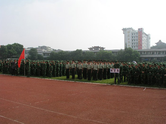 9月6日上午9:00,鄂州职业大学2008级新生军训开训仪式在一号教学区体育场隆重举行。武警鄂州支队支队长刘再红、武警鄂州支队参谋长何峰、武警鄂州支队教导大队大队长胡加统,鄂州职业大学校长田巨平教授,副书记、副校长洪贞银、副校长童长江、副校长饶浩洲、校长助理卫杨春、校长助理蒋沁蓓、校长助理胡海平、纪委副书记、监察处处长尹传武,以及校内各处室和各院系的领导出席本次活动,武警鄂州支队官兵代表、我校3000余名08级新生参加了此次仪式。