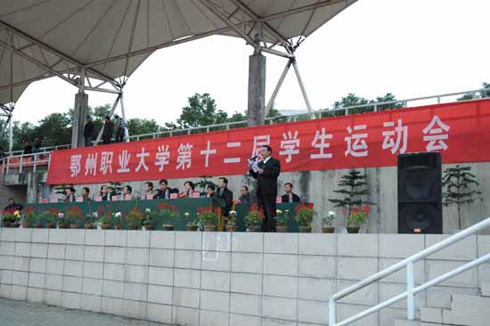 田巨平在致词中说,一直以来,我校非常重视体育工作,体育设施不断完善,全民健身活动蓬勃发展,竞技水平不断提高,体育工作在全省同类高校中名列前茅。他强调,校运会是我校全面推进素质教育,增强学校凝聚力,丰富校园生活的一项重要举措,也是对我校体育教学工作的一次大检阅,更是当代大学生精神风貌的一次大展示。他希望,全体运动员严格服从大会安排,听从大会指挥,尊重裁判,公平竞争,充分展示出我们鄂州职业大学的精神风貌。