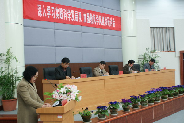 副书记、副校长洪贞银在会上指出了学校在教风和学风方面存在的问题和具体改进方法。他指出,目前,我校教师存在有四个问题:一是个别教师责任心、职业道德感还不强;二是个别教师在专业技能上缺乏应有的素质;三是个别教师教学方法有待改进;四是学校在这些问题上的制度还不是很完善。他要求各单位在这些方面加大改革力度、用科学发展观重要思想指导我们的工作,为学校的示范高职建设贡献力量。