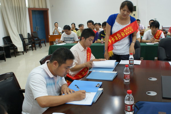 校团委书记洪辉代表学校与志愿者签订了2009年大学生志愿服务西部计划招募协议,并讲解了签订协议书的重要意义和有关注意事项,鼓励志愿者在工作、生活和学习中,时刻严以律己,不断提高自我管理的意识和能力,把在校所学知识充分运用于实践,在实践中继续学习提高,施展自己的才华,积极参与服务地叁个文明建设,为当地经济和社会进步献言献策,以实际行动唱响时代强音,到基层建功成才。志愿者们在协议书上庄重地签上了自己的名字,并表示,一定会在岗位上认真工作,勤奋学习,努力为当地的经济和社会发展做贡献,保持谦虚谨慎、戒骄戒躁的作风,做到诚诚恳恳待人,踏踏实实做事,绝不辜负学校的期望,领导、老师的信任,尽自己最大努力在祖国西部的广袤大地上拼搏奋进,用自己的优质服务弘扬“奉献、友爱、互助、进步”的志愿精神,当好先进文化和知识技术的传播者,志愿精神的弘扬者。