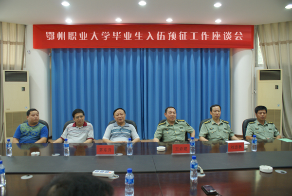 为贯彻落实总参谋部、总政治部、教育部、财政部《关于做好普通高等学校应届毕业生征集工作的通知》和全国高校毕业生入伍预征工作座谈会精神,全面了解我校毕业生入伍预征工作情况,广州军区鄂州军分区、鄂州市鄂城区武装部、鄂州市教育局一行7人,在鄂州军分区参谋长王必建同志带领下,于6月24日下午来我校调研毕业生入伍预征工作。校党委委员、校长助理胡海平同志率学工处、武装部及部分院系书记、副书记接待并参与了本次调研座谈会。