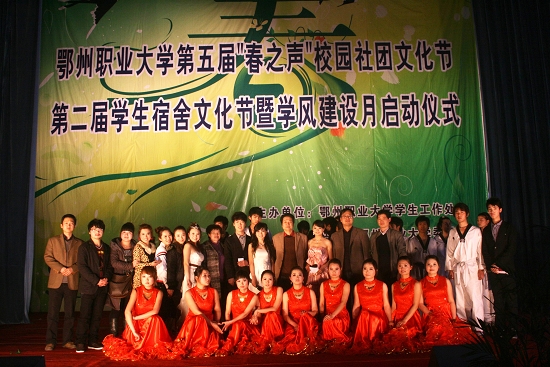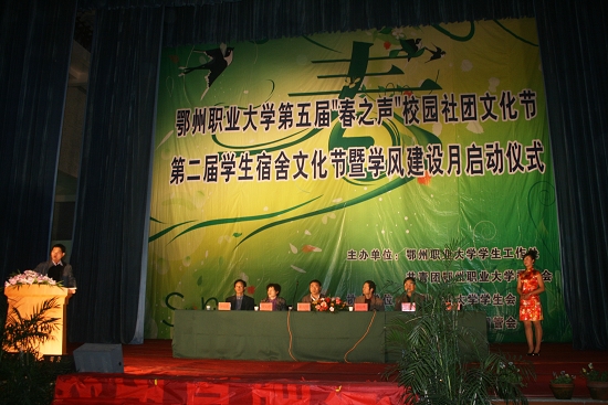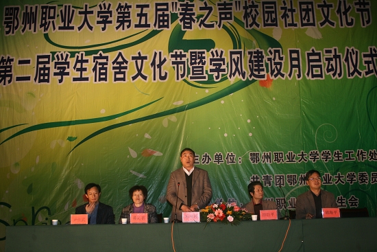 在党委书记彭有轩同志铿锵有力宣布声中鄂州职业大学第五届“春之声”校园社团文化节、第二届学生宿舍文化节暨学风建设活动月正式开幕。