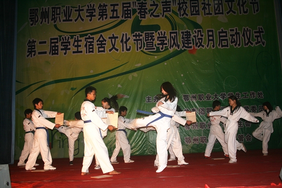 随后系列文化表演华彩登场,节目类型迥异,包括歌舞、跆拳道、健美操、模特秀等,精彩纷呈,博得了全场学生的阵阵喝彩。