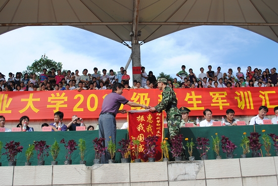 运动场上国旗飘扬,国歌激昂,4000余名军训新生齐集操场整装待发。校党委书记彭有轩发表了重要讲话,并对我校新生军训工作做了充分肯定。他指出,军训过程中同学们都能热爱自己的新集体,团结互助,服从指挥,刻苦训练,继承和发扬了军人"不怕苦,不怕累"的作风,严格要求自己,规范每个动作,经受住了特殊的考验。在如此短暂的军训时间里能取得如此出色的成绩,与教官们的严格要求,老师们的关爱,同学自身的刻苦努力是分不开。此外彭书记还对我校2010级新生给予了殷切厚望,希望他们在大学三年的生活里,努力拼搏,艰苦奋斗,三年后给自己交出一份满意的答卷。