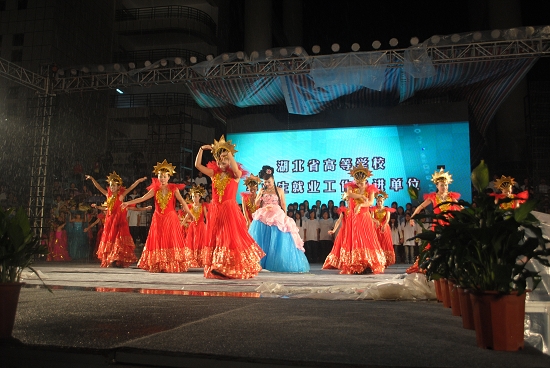 9月28日晚,新落成的教学楼前广场灯火辉煌,人头攒动。我校2010年开学典礼暨国家骨干高职院校申办成功庆校大会文艺晚会在这里隆重举行。校领导彭有轩、田巨平、洪贞银、饶浩洲、卫杨春、蒋沁蓓、胡海平;校党委委员、人事处长尹传武、校党委委员、党办主任夏清山及武警鄂州支队副支队长曹宏煊、中国移动鄂州分公司经理武生宝等与5000余名师生一同出席典礼。