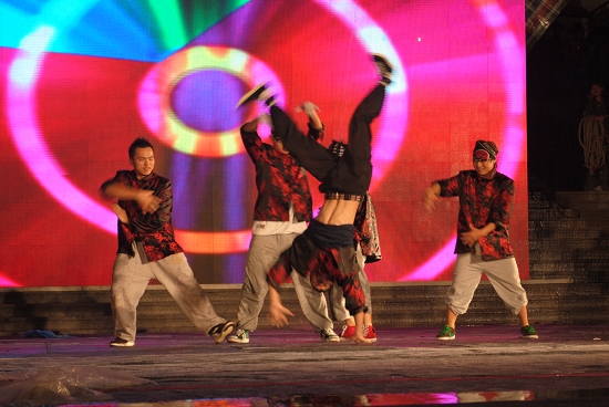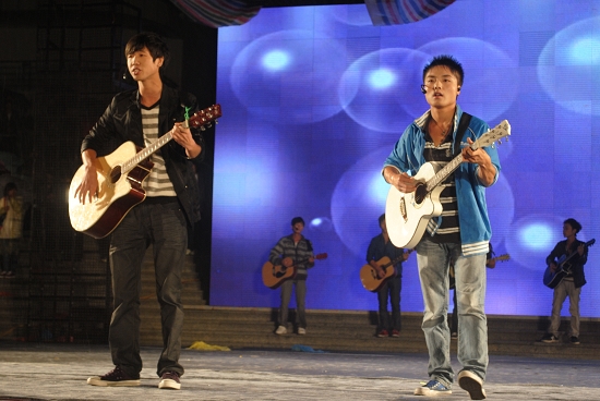 典礼仪式结束后,迎新晚会演出开始。虽然天下着大雨,但并未浇灭师生们观看表演的热情,一个个精心准备的节目,一幕幕精彩绝伦的演出,将现场氛围一次次推向高潮。