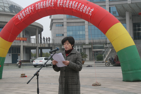 校长助理蒋沁蓓在启动仪式上发表致辞,对我校志愿服务活动给予了充分肯定,并对此次活动作出要求。在以无偿服务为宗旨,以志愿参与为原则的条件下,要高度重视充分认识开展志愿服务活动的重要意义;其次要围绕主题,扎实开展各类志愿服务活动;同时加大宣传,营造志愿者活动的浓厚氛围;最后要切实提高服务意识,掀起志愿者服务新的高潮。