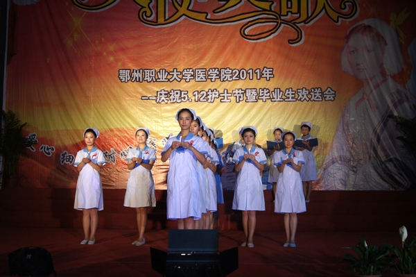 青春激昂,放飞梦想。5月12日下午,我校医学院庆祝2011年“5·12护士节暨毕业生欢送会”在艺术礼堂隆重举行。学校及处室领导蒋沁蓓、夏清山、马凌军、刘宏文、范国珍以及医学院院长秦自荣和院系领导出席了此次天使赞歌联欢会。