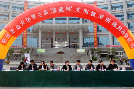 11月16日下午,我校第三届“联通杯”文明宿舍创建月启动仪式在图书馆广场召开。出席本次大会的有校长助理蒋沁蓓,学工处处长马凌军,学工处副处长刘宏文、秦科,校团委书记范国珍,校团委副书记艾涛及各院系的代表。