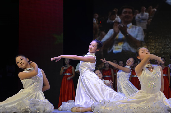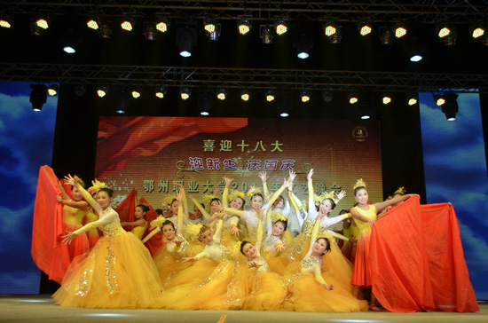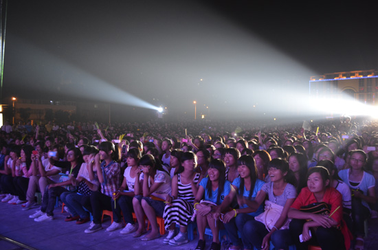 9月25日晚,求真广场,霓虹璀璨,歌舞纷呈。我校2012年“喜迎十八大 迎新生 庆国庆”大型文艺晚会在这里隆重举行。校领导班子成员和我校近万名师生一起观看了演出。