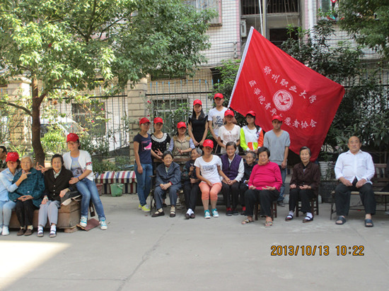 2013年10月13日上午,医学院青年志愿者协会积极组织14名新生志愿者前往夕阳红老人院陪老人欢度一年一度的重阳佳节。