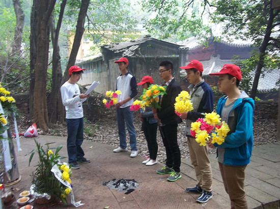 同学们聆听了彭楚藩烈士的个人事迹,并在纪念碑前一一为烈士们献上鲜花,并庄严宣誓。随后,大家用自身携带的工具,擦拭纪念碑上的灰尘,清除纪念碑周围的垃圾和杂草,用行动表达对先烈的缅怀和崇敬之情。