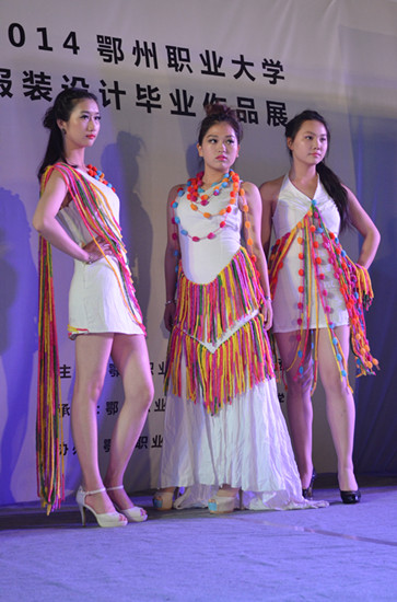本网讯(通讯员 南利君 学生记者 胡慧 刘婷婷) 炫目的灯光、高挑的模特、时尚的服装、自信的笑容……5月8日晚七点半,艺术与传媒学院服装设计专业2014届毕业生作品展演在行知楼中央大厅拉开帷幕,整个展演持续近三小时,以T台走秀、文艺表演的方式向观众集中展示了37个主题系列的近200套精美服装,全校千余名师生现场观看了展演。