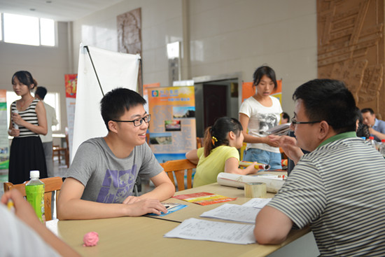 武汉某保健公司的总经理在招聘现场一边招聘,一边了解大学生的就业需求。公司招聘负责人介绍说,公司在不同高校挖掘人才,比较下鄂大学子很优秀,综合素质比较突出,对于本次招聘整体感觉很不错。