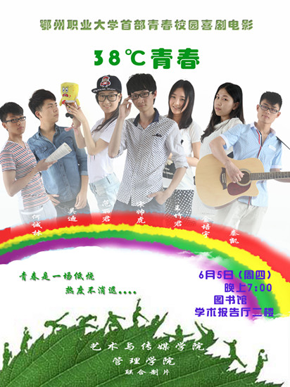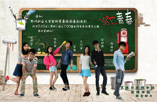 《38℃青春》,是艺术与传媒专业学子继《错过》、《第七感应》后自编自导自演的第三部电影,毕业生们用自己的才华和汗水,献上了自己三年来的学业成绩,也给自己的青春留下了印记。影片的导演表示,《38℃青春》虽是一部喜剧,幽默搞笑,但是娱乐并不是影片的关键,他们想藉轻松的氛围,传达和引导大学生们对青春的态度和思考。