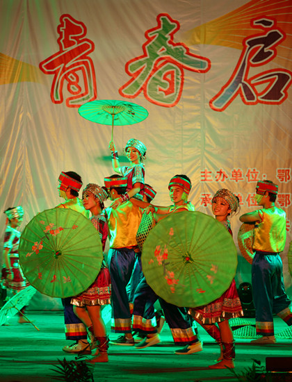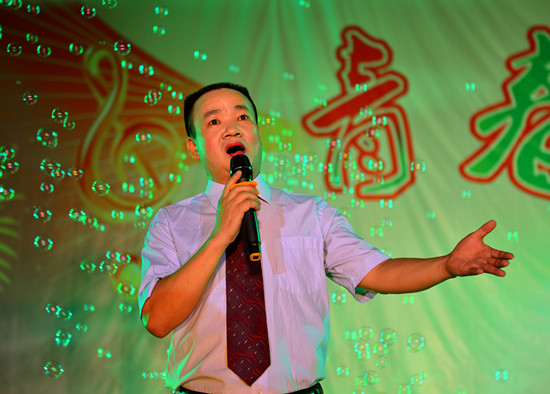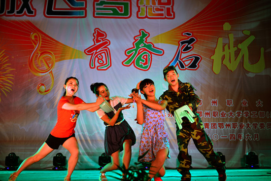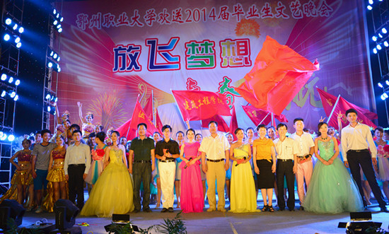 本网讯(学生记者易平谦 刘婷婷 杨小玲/文 瞿志立 黄瑜/摄)栀子飘香,离别在即。6月12日晚,我校在学生活动中心隆重举行专场文艺晚会,欢送2014届毕业生。校领导杨植涛、周岫、胡海平,各院系处室负责人与千余名毕业生观看了晚会。