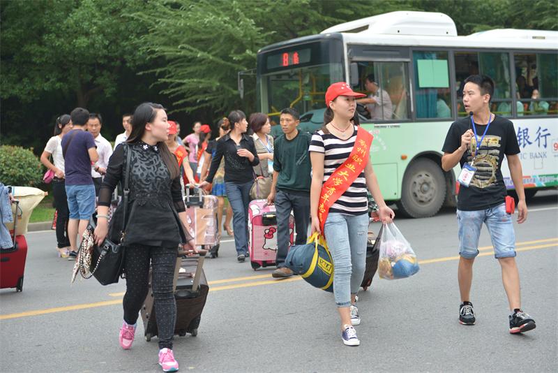 迎新现场人头攒动、热闹繁忙,但秩序井然、有条不紊。各主要场所、路口设置了巨型校园平面指示图、道路指示牌、报到流程表;架设了大量晴雨蓬、桌椅、饮水机供学生和家长休息;设立了问讯处,安排了校园巡逻队,大量高年级学长学姐忙碌在各服务点,为新生们做指引、领物品、搬行李、找寝室;学校在武汉、鄂州及周边城市的汽车站、火车站都设置了接待点,在校内安排了返程乘车点,安排专人专车24小时接送学生、家长来校及返程。