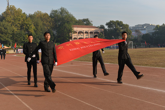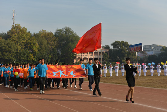开幕式上,激昂的进行曲中,11个院系的学生代表队、彩旗方队、裁判员方队等,迈开整齐矫健的步伐,昂首阔步、意气风发地一一走过观看台,嘹亮的口号声响彻云霄,观众席的师生们为这份激扬的青春和活力报以阵阵掌声与欢呼。
