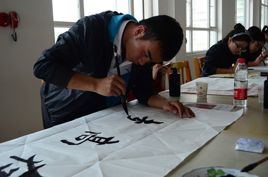书法大赛分为硬笔书法和软笔书法,共有来自全校各院系的百余名学生参与了比赛。比赛场地展列着大量书法作品,供观赛者们欣赏品鉴,活动还准备了歌曲演唱、古筝弹奏、诗歌朗诵等小节目,为比赛现场营造了浓浓的“中国风”的文化艺术范儿。