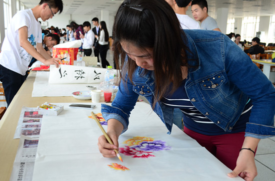 黄冈职业技术学院书画协会也应邀来校,与我校书画协会和书法爱好者们进行交流,他们带来的国画《牡丹》与书法作品引来参观者们赞不绝口。