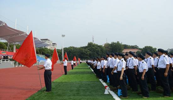 2015级新生代表在发言中表示,军训期间将以军人的标准严格要求自己,努力完成军训任务,学好军事知识,以优异的军训成绩向学校与教官汇报,以良好的精神风貌去迎来全新的大学生活。承训教官们还进行了现场列队、行进等表演,整饬的军姿仪容,令学生们大为倾倒、热烈鼓掌。