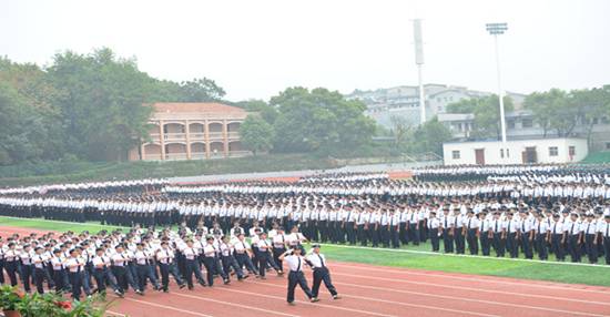 9月23日上午,2015级新生军训汇报表演在西区体育场隆重举行。海军工程大学曹跃云大校、姚佐清上校及我校的全体校领导、各院系处室负责人等出席汇报表演,共同检阅军训成果。承训教官们用英气逼人的队列表演拉开了汇报表演的序幕。千名新生的军体拳表演,动作有力,阵阵呐喊声振聋发聩,令人胸中激荡。旗语方阵气势如虹,千余面旗帜在空中翻飞,打出“厚德自胜,乐学道成”的鄂大校训。踏着进行曲的节拍,全体受训新生昂首挺胸,迈开坚定的步伐,意气风发地一一正步走过主席台,接受所有观众们的检阅。