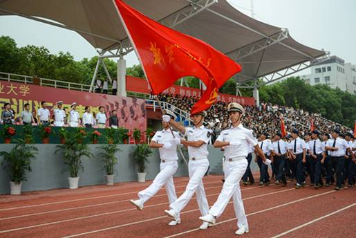 校长洪贞银对新生们在军训中呈现出的顽强、进取的精神状态和意志品质予以了赞扬,对承训教官们的工作成果表示由衷的感谢,并向全体新生提出殷切希望,希望他们能够自立进取,树立明确的奋斗目标,做一个德才兼备的大学生。曹跃云大校对新生圆满完成军训任务表示祝贺,他说,同学们在阅兵式上的表现让人深受鼓舞与振奋,希望大家能在今后的学习中保持军训精神,重视自我学习、自我规划,成为国家建设之才。随后,校党委书记杨植涛向海军工程大学赠送锦旗,感谢海军工程大学全体承训教官为此次军训付出的用心和努力。