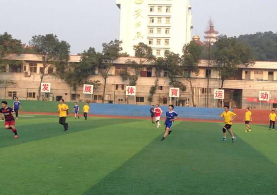 在对抗中合作,在竞争中成长。为丰富校园文化、增强学生体质,让学生在足球文化活动的熏陶中,学会坚强、合作,提升自信、责任感,我校由公共体育课部组办的全校师生足球联谊赛开赛了。