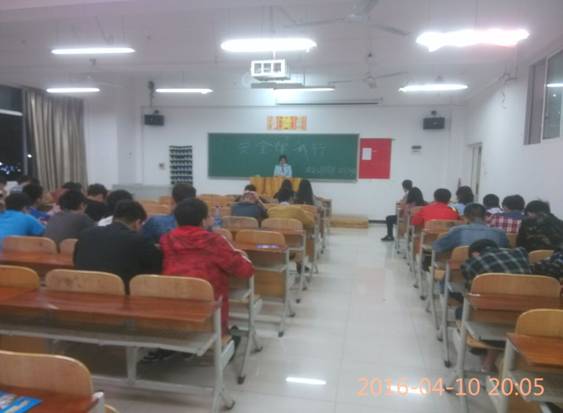 根据学工处学生科安排,于2016年4月10日晚7点在五号教学楼进行了学生安全知识教育讲座。