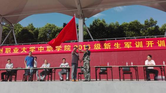 经过周密的研究筹备,报请校党委同意后,中职学院为刚进校的2016级新生安排了这次军训。院长张刚民主持了开训仪式,书记朱冰做了简短的动员讲话,教官和新生代表分别发言。军训领导小组第一副组长、校学生处长陈永红为大队授旗。中职学院2016级新生军训编为一个大队辖三个中队.
