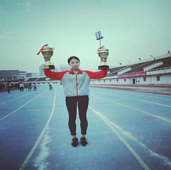去年,她第一次参加我校秋季运动会便获得400米障碍第一、三级跳第二、100米栏第一、100米第三等多个奖项。今年9月,她入选校田径队,开始备战省大学生运动会,每天下午4:00-7:00她会准时出现在西区体育场上进行专项训练。