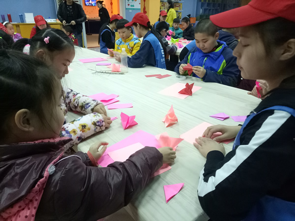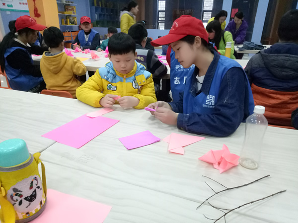 | 早春三月,江南草长,正是“植树添绿”时。3月12日上午,春雨绵绵,鄂州职业大学医学院的青年志愿者们来到鄂州博物馆,在博物馆杨杨、杨晓明、谢慧贤三位老师的指导下,一起为市内到博物馆游玩的孩子们开展了一次别出心裁的“植树”活动。 博物馆的老师们和我们的志愿者们为小朋友们讲解植树节的起源及相关知识,孩子们认真倾听并积极举手诵读。谢慧贤老师和志愿者们为小朋友们教授花卉折纸的技巧,待小朋友们上完课后志愿者便手把手教他们。每个孩子都认真学习,心灵手巧,折出了美丽的花朵,还剪出细小的绿叶,黏在枝桠上。在孩子们的欢声笑语和志愿者们的循循善诱下,一节绿色课堂便结束了,小朋友们举着折纸花卉拍照留念,欣喜回家。 不知细叶谁裁出,二月春风似剪刀。此次活动,志愿者与小朋友们剪刀化春风,绽花朵裁细叶,为春天添绿添暖。植树节并不仅仅是植树的日子,更是要引导大家树立绿色理念,爱护草木。志愿者们也获益良多,既丰富了自己的课余文化生活,也为绿色环保的宣传做出自己的努力。 |
