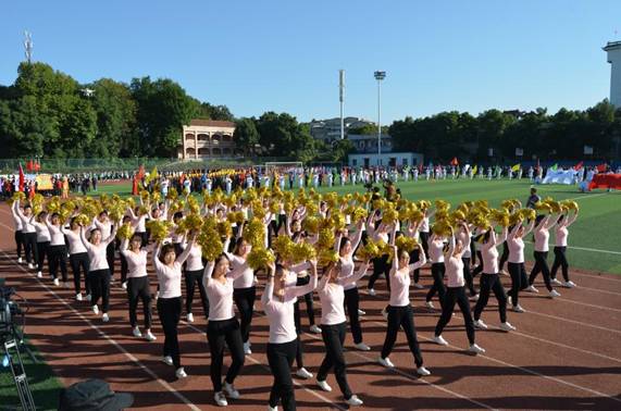 校报讯(学生记者张丹)灵动翻飞的舞狮表演、欢快动感的啦啦操、酷炫单车配太极、婀娜摇曳的戏曲广播体操,10月30日上午,我校迎来了第21届秋季运动会,开幕式上学生们尽情展示才艺和创意,演绎了精彩纷呈的入场式。全体校领导、各院(部)处室负责人及近万名师生一同参加了开幕式。