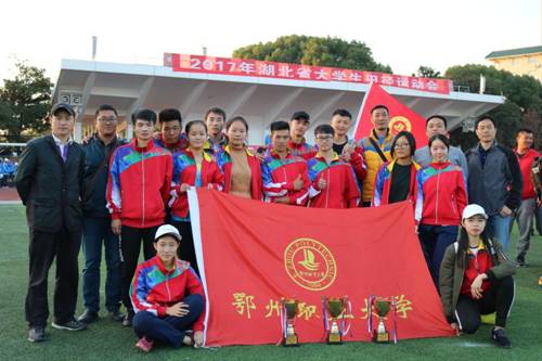 | 2017年11月5日,为期3天的2017年湖北省大学生田径运动会在中南民族大学胜利落下帷幕。 我校田径代表队经过努力拼搏,最终获得3枚金牌,2枚银牌和2枚铜牌,男子团体总分第七名,女子团体总分第2名,混合团体第3名的好成绩! 2017年湖北省大学生田径运动会获奖情况 地点:中南民族大学 时间:11月3-5日 组别:丙组 参赛学校:27所 女子丙组总分第二名, 男子丙组总分第七名, 丙组团体总分第三名, 女子1500米凌海艳(医学院)获得第二名。 女子800米凌海艳(医学院)获得第二名。 女子400米栏王巧怡(医学院)获得第一名。 女子4﹡100米接力获得第三名(凌海艳、罗黄辉、王巧怡、唐孟钦)。 女子4﹡400米接力获得第三名(凌海艳、罗黄辉、王巧怡、赵丹妮〈管理学院〉)。 女子100米罗黄辉(医学院)获得第七名。 女子400米罗黄辉(医学院)获得第二名。 女子100米唐孟钦(商学院)获得第四名。 女子跳远唐孟钦(商学院)获得第四名。 女子铅球王兆琴(管理学院)获得第七名。 男子1500曲木尔古(体育课部)获得第六名。 男子110米栏杨阳(机械学院)获得第五名。 男子400米栏杨阳(机械学院)获得第一名。 男子三项全能艾均(建工学院)获得第一名。