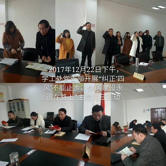 2017年12月22日下午,学工处党支部开展“纠正‘四风’不能止步、作风建设永远在路上”主题党日活动。