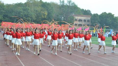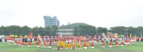 在文艺表演环节,40人组成的彩带表演灵动飘逸、上下翻飞;49人手持红色板块摆出“国旗”等造型的表演更是赚足观众眼球;120人组成的广场舞体现了舞蹈与运动结合的美;雄浑壮阔的舞龙表演、行云流水的太极展示以及中国传统武术表演令现场掌声不断。