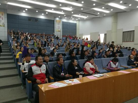 市疾病预防控制中心副主任陈敬义从艾滋病的流行形势、相关知识、如何预防,特别是大学生的预防四个方面向在场同学们进行了讲解。他声情并茂的讲课赢得了同学们的阵阵掌声,讲课中插入的有奖问答互动环节,在场的同学们积极参与,将整个活动推向了高潮。