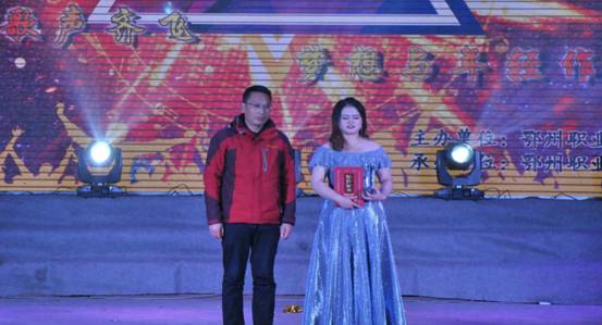 最终,来自教育与管理学院的郑伊琳同学一首歌曲《不醉不会》惊艳全场获得了本次比赛的冠军,学工处处长陈永红为她颁奖并合影留念。