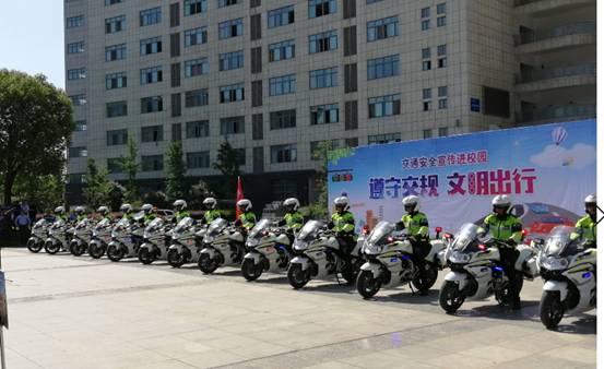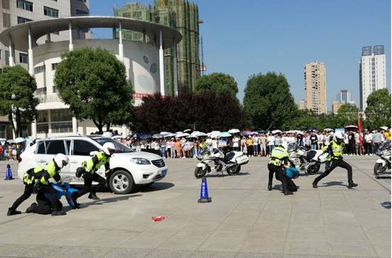 主题活动现场,鄂州公安铁骑队开展了交通安全知识讲课、交通手势演示、警用摩托车驾驶演示、飞车抢夺、酒驾查处等现场模拟演示,精彩的表演不断赢得在场师生的掌声和欢呼声。