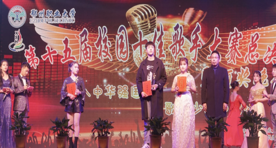 最终,来自服装与艺术学院的廖琪同学一首歌曲《突然好想你》惊艳全场获得了本次比赛的冠军,学工处处长陈永红为她们颁奖并合影留念。