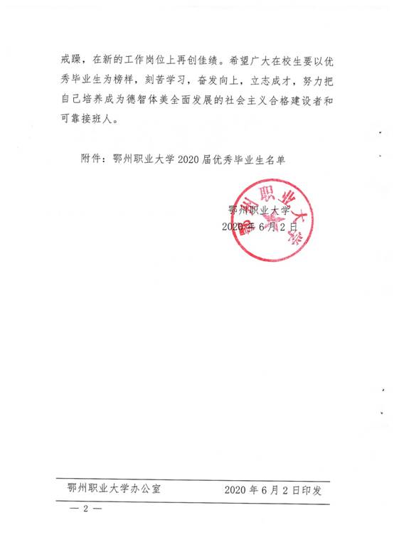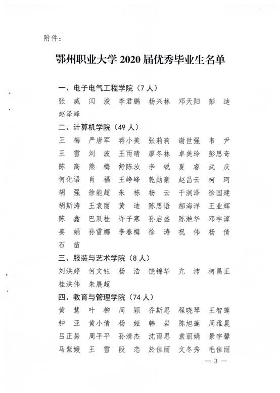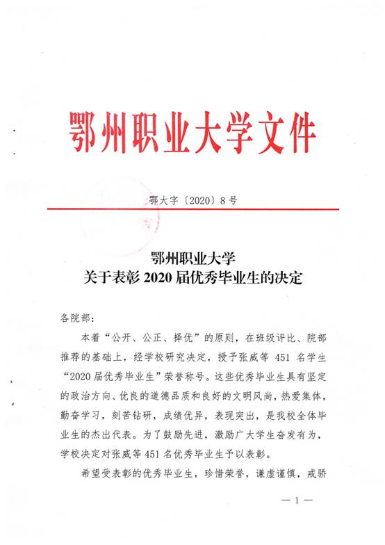 鄂州职业大学关于表彰2020届优秀毕业生的决定