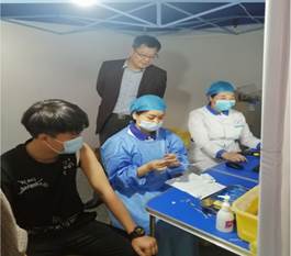 经过学校和市中心医院精心准备,3月29日上午8:30开始,在校院学工老师、校学生会、校宿管会、校卫队学生干部的组织引导下,在校学生分学院、分班级、分批次进入接种点,有序接种疫苗。校党委书记万国光2次深入接种现场指导工作,副校长胡海平全程现场指导了疫苗接种组织工作。3月30日晚23时,经过现场师生和市中心医院医护人员共同努力,疫苗接种工作圆满完成。
