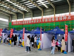 3月26日,我校接到了在校园接种学生新冠疫苗工作任务,29日开始接种。3月27日上午,在市卫计委、市中心医院专家考察了国家建筑工程实训中心现场后,学工处迅速协调学工、后勤、保卫、资产、财务、学院等各部门30余名工作人员在24小时内完成鄂州首个方舱式接种点设施搭建、卫生清理、网络报装、电路插座安装、功能区划分等工作,共搭建帐篷71顶,设置1个学生候诊等待区、25个信息登记健康筛选台、15个方舱疫苗接种台、1个服务保障区和1个留观区。