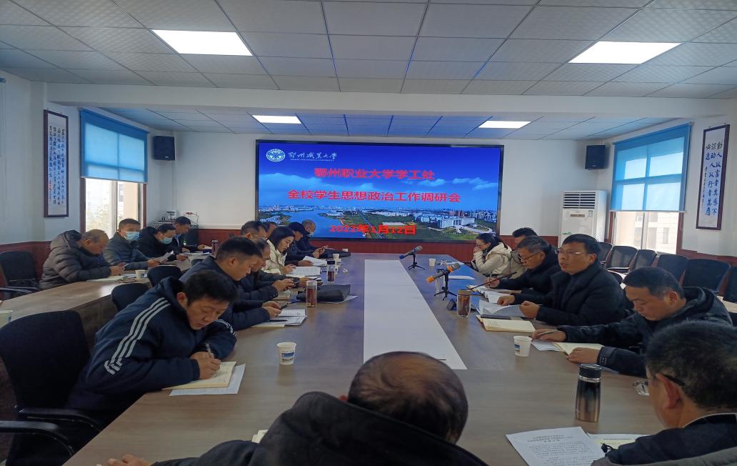 2022年1月12日上午9:30,学工处组织各院(部)在教育管理学院会议室就我校构建思想政治体系开展调研。校党委委员、副校长胡海平,各院(部)党总支书记、副书记参加会议,会议由学工处处长陈永红主持。
