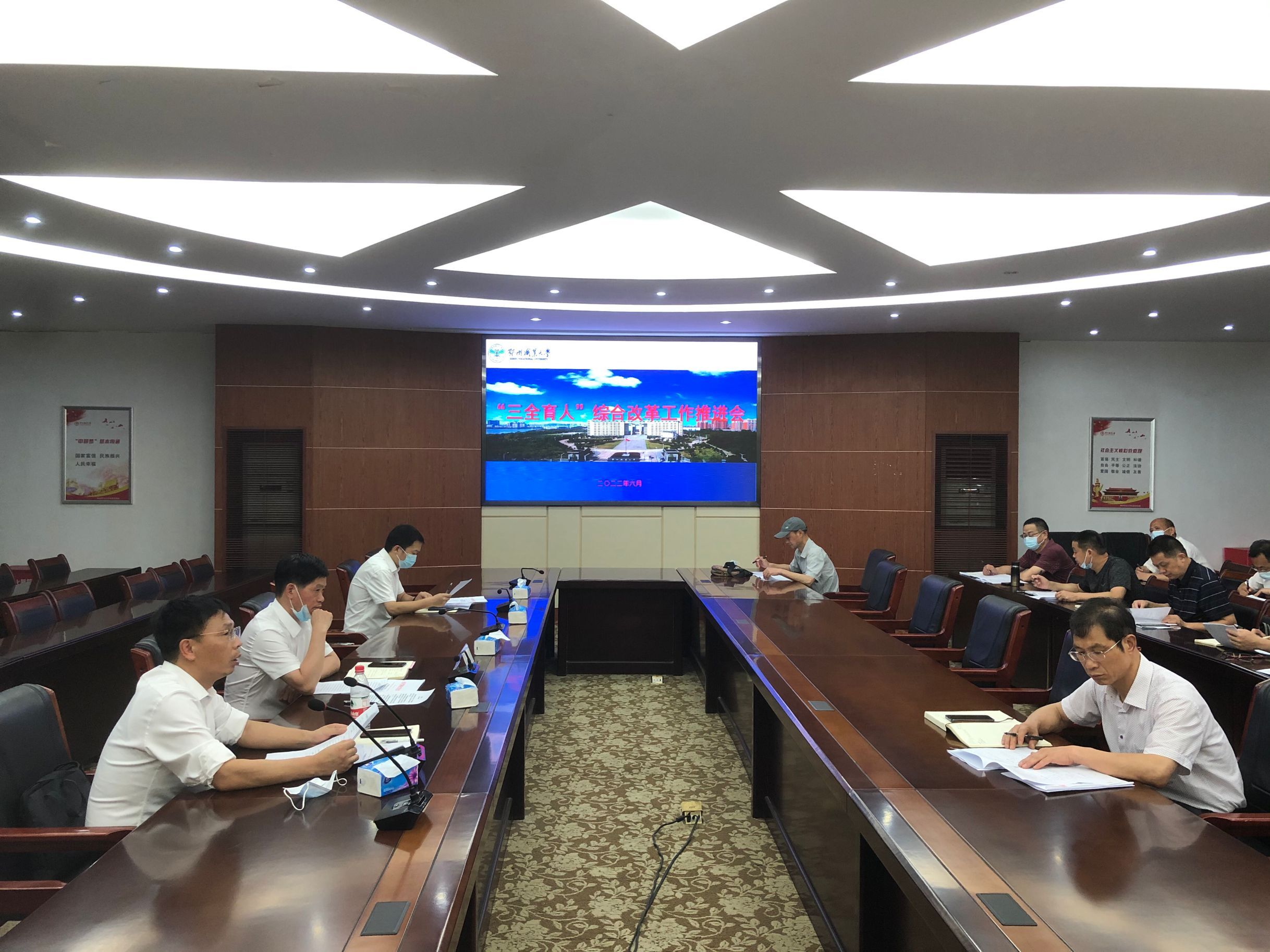 6月2日下午四时,我校“三全育人”综合改革工作推进会在图书馆一楼会议室召开。校党委委员、副校长马凌军出席会议,各牵头单位及相关单位主要负责人参加会议。会议由学工处处长陈永红主持。