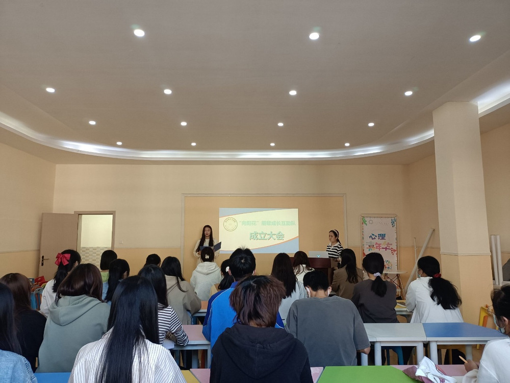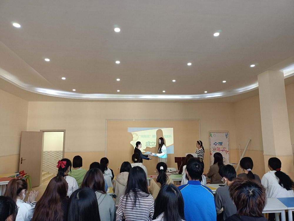 2022年10月5日中午,鄂州职业大学“向阳花”朋辈成长互助队成立大会在心理健康教育中心培训室举行。