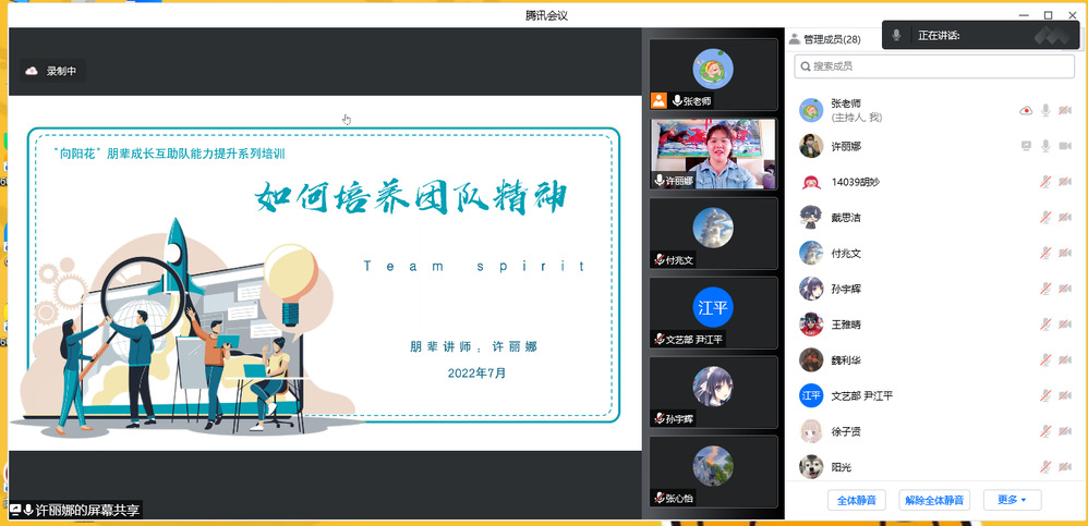 2022713日,心理健康教育中心举办“向阳花”朋辈成长互助队系列培训之“如何培养团队精神”,本次培训由心理健康教育中心专职教师张炎主持,邀请到的朋辈讲师是教育与管理学院2020级许丽娜同学。