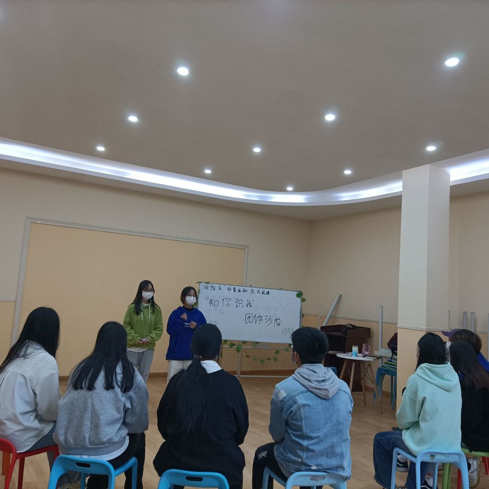 第一个活动是“寻找另一半”,同学们随机抽取不同颜色和形状的卡片,然后去寻找跟自己的卡片能够拼成完整图形的同学,两人一组进行相互介绍,然后向在场同学介绍自己的伙伴,通过介绍增进了同学们的相互了解。