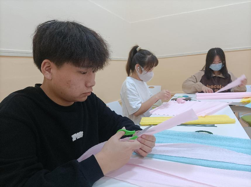 20221021日下午,第二期“心心相艺”朋辈艺术手工坊活动在心理健康教育中心沙龙室举办,本次活动的主题为“花”样时光,内容为手工制作皱纹纸纸花,邀请到的朋辈艺术指导员为2021级学前教育1班的徐丹丹和吴帆帆同学。
